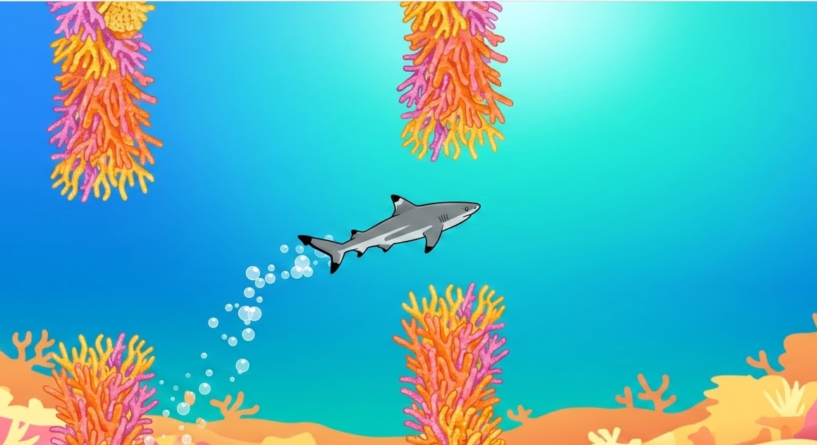 Using Google Gemini, I was able to code this simple Flappy-bird-inspired game with a black-tip reef shard swimming through a coral reef! This would be a fun game for any Biology class during a Marine Biology or Food Chain unit. I’d like to alter the game a bit so the shark can collect points by eating little fish.